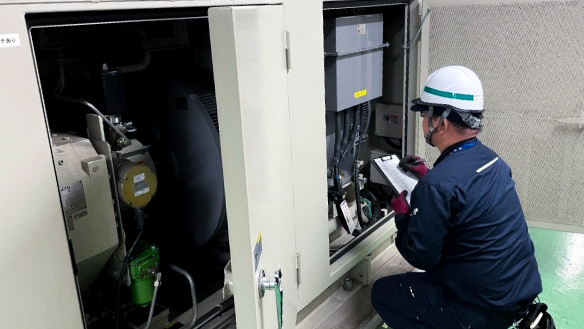 東京メトロの各駅・本社・研修センターなどへ電力を供給する受変電設備や、主要駅に設置されている非常用発電機の保守管理を行っています。特に非常用発電機は災害などに伴って駅構内が停電した場合、防災用照明や消防設備に電力を供給する非常に重要な設備です。万が一の場合にお客様の安全を守り、迅速な消火活動に必要不可欠な電力を供給するため、6か月ごとに円滑な点検作業が出来るよう管理・監督業務を行っています。
